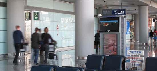 - Digital signage in the lobby is fed information from the database with updates for real-time arrival, boarding, and gate information.